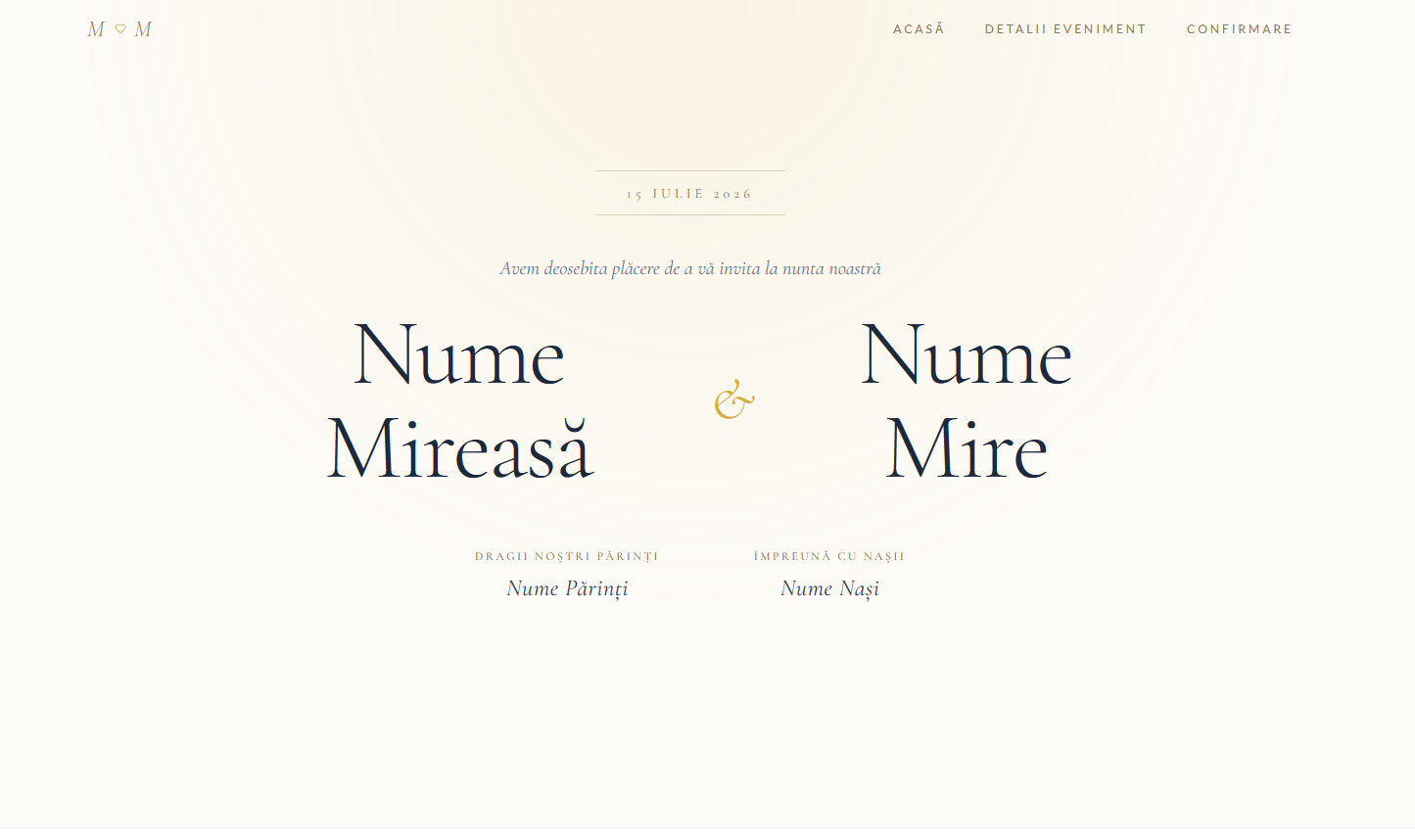 Personalizează modele premium într-un mod simplu și intuitiv. Eleganță digitală pentru evenimentul tău special.